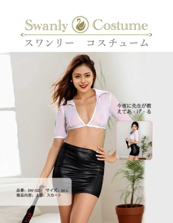 Swanly – 撩人透膚OL皮裙套裝(SW-520)